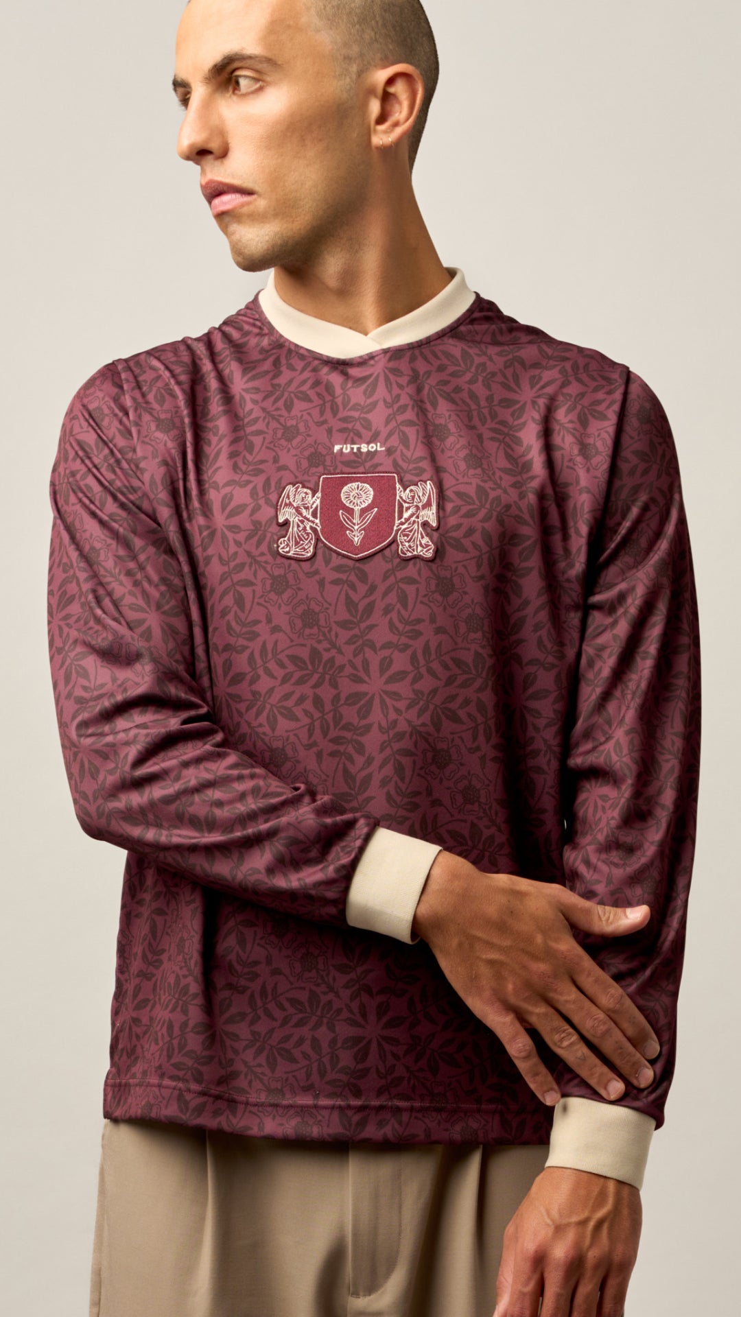 Inspired by medieval and folk football, once played in village greens and town squares, we explored slanted pitches and sites that speak of spirituality, magic, and myth. This collection channels the essence of communion with nature - a connection to the grass, the soil, and the elements: fire, wind, water, and football. We seek escapism, a higher power through the game and the earth it is played on.