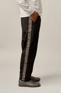 Blacker than pagan myth, these track pants – nice with the matching track top, lovely with a smart shirt – represent the feeling of nature and ancient tradition at the heart of the origins of football. The strip tape is made up of a hand drawn illustration - autumnal berries and wildflower that are so intwined with old English folklore.