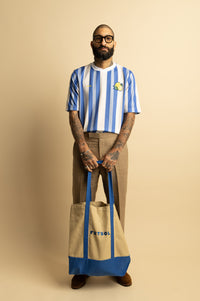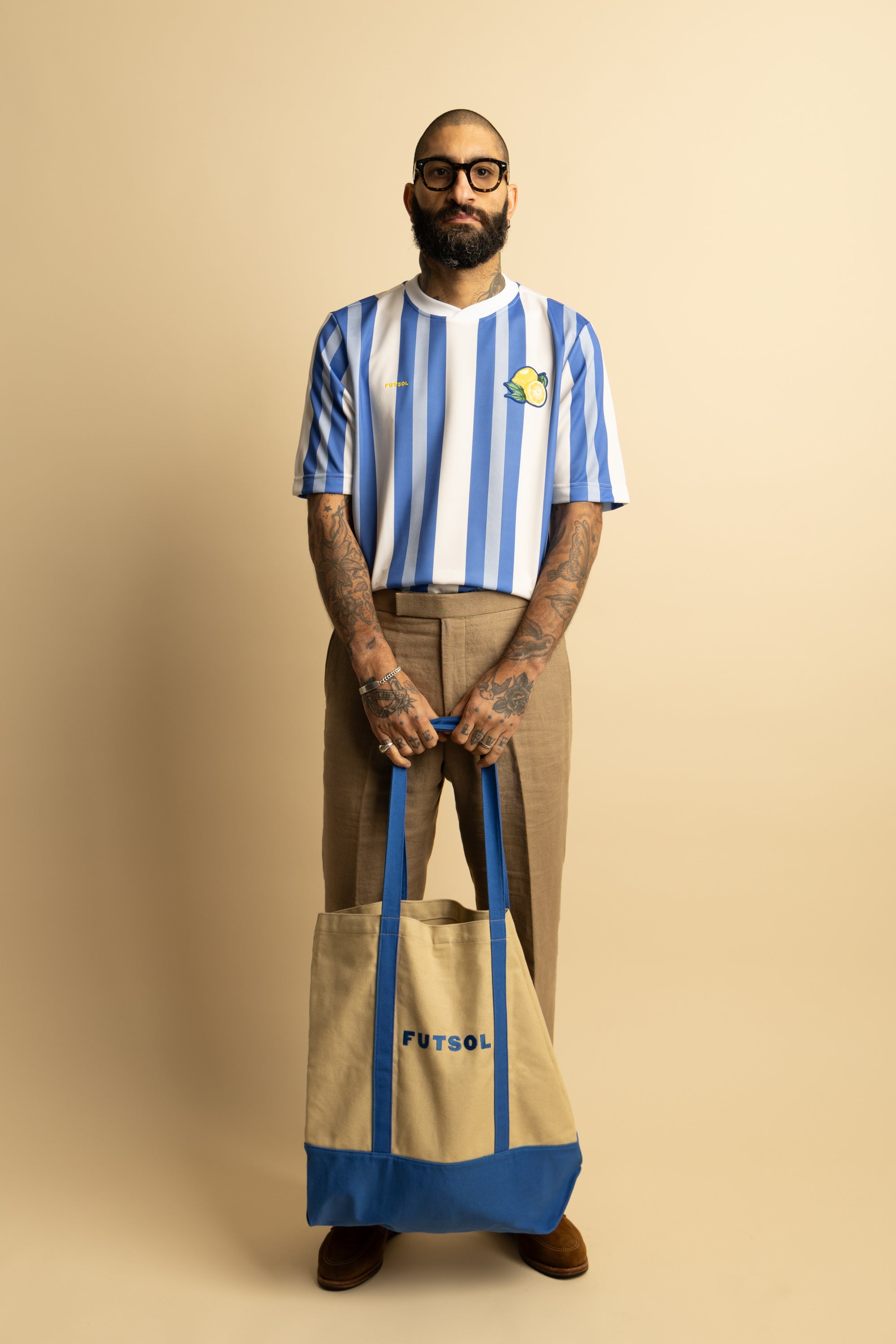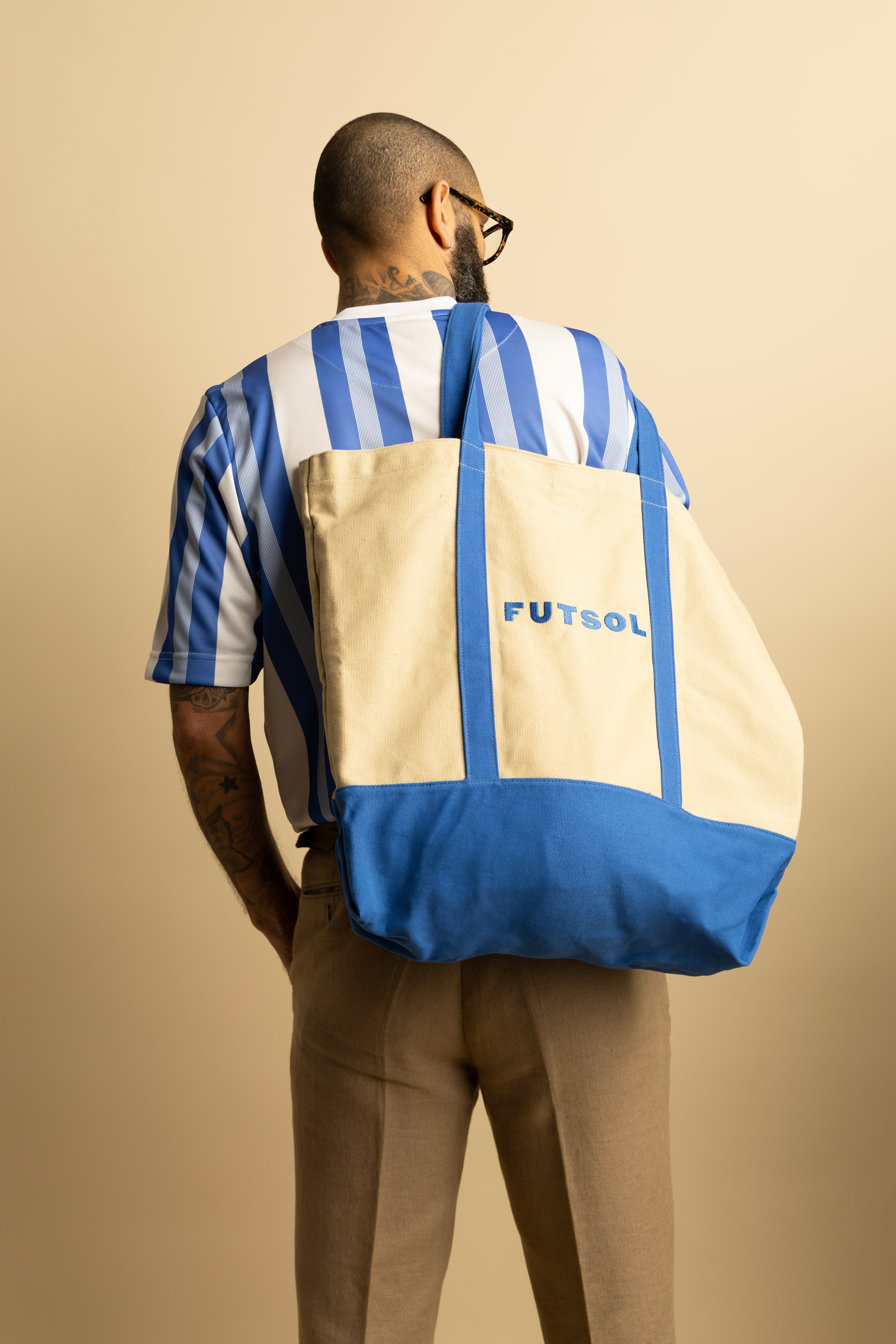 Inspired by sun washed colours on the beach, striking blue prevalent in Alentejo coastal towns and yellow rock shade. Embroidered Futsol wordmark and internal laptop pocket. To hold your football kit, boots and balls.