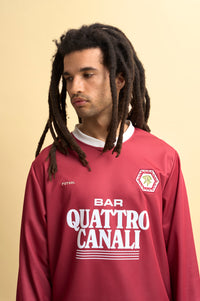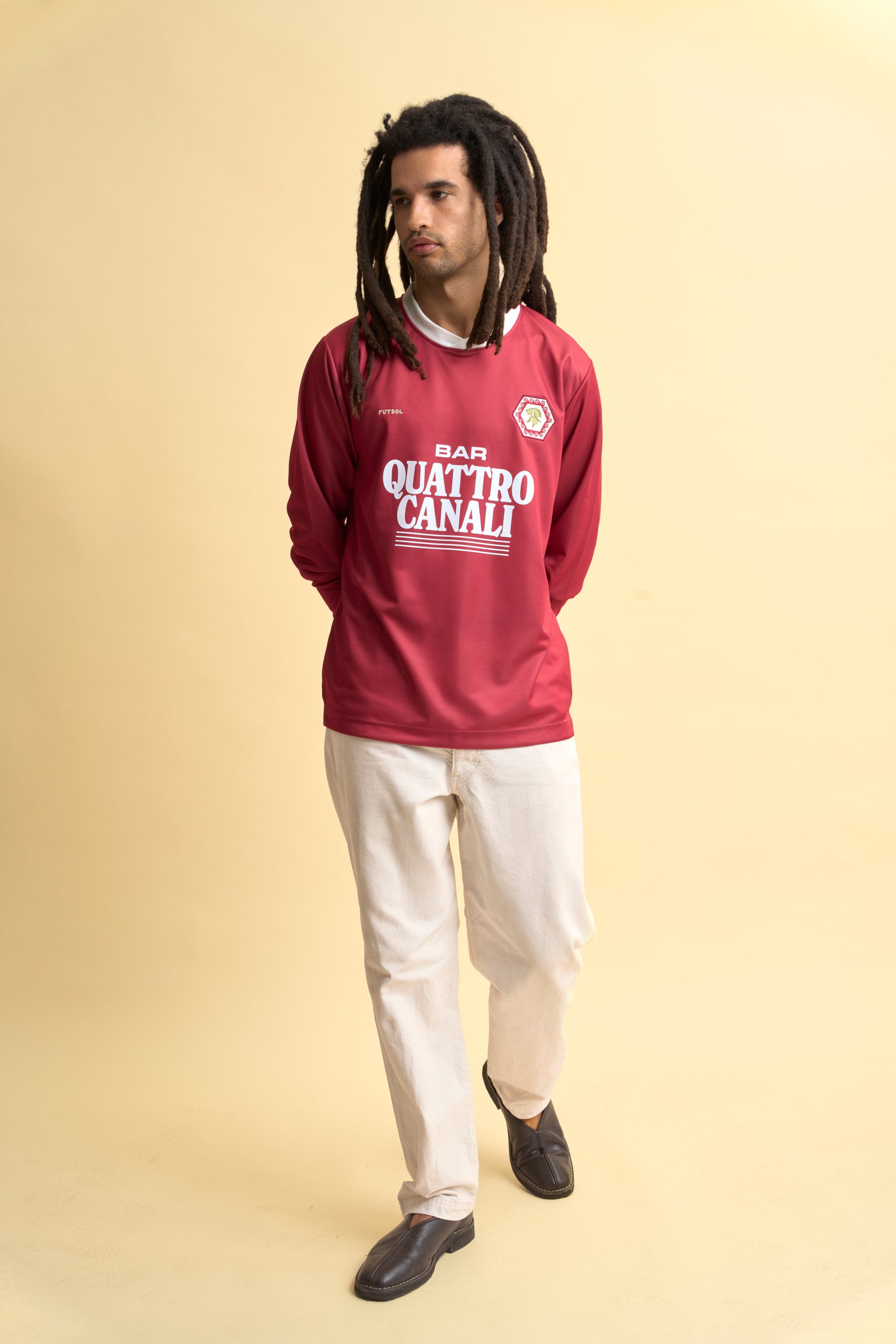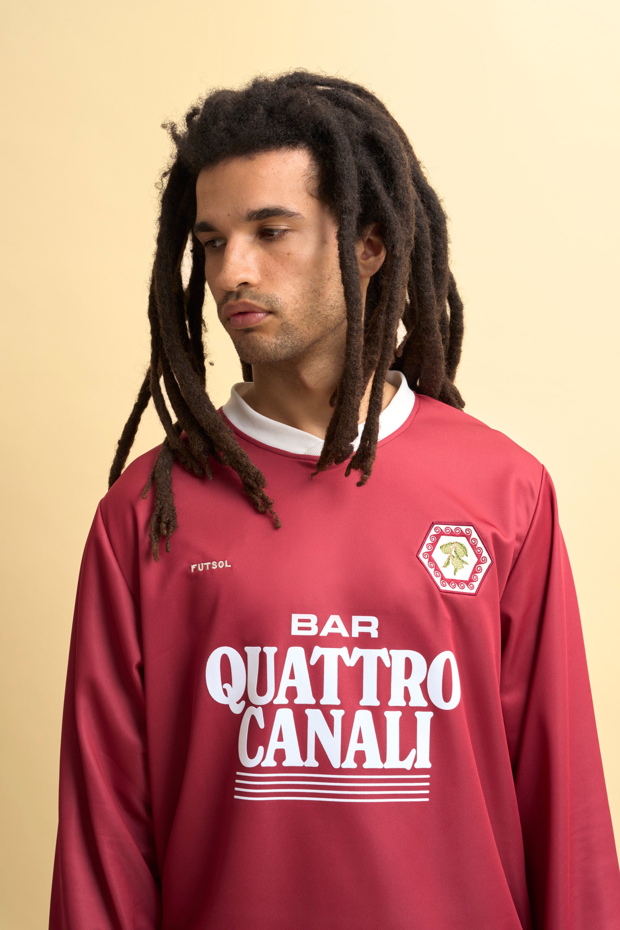 A painterly red shirt with contrast cuffs and collar, the Canali Peperoncino brings a touch of heat to the collection. Think late afternoons, sunbaked stone, and the glow of a second glass of Nero d’Avola. The sponsor graphic was designed by Mattia, a local creative from Piazza Armerina, who drew inspiration from the vintage signs of his hometown — a curious, football-loving place that shaped this story.