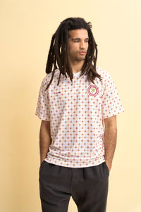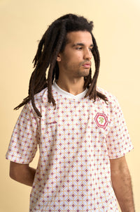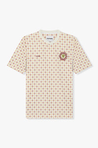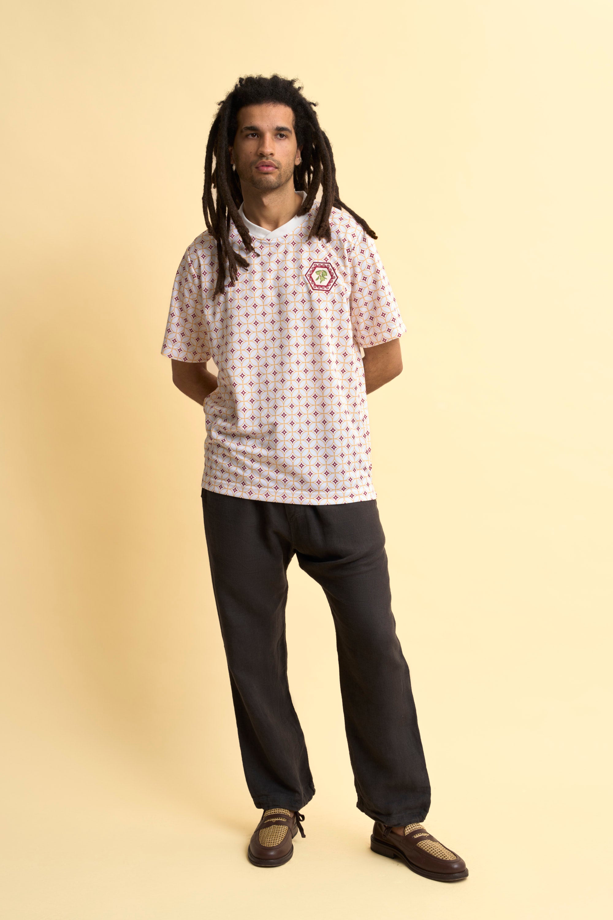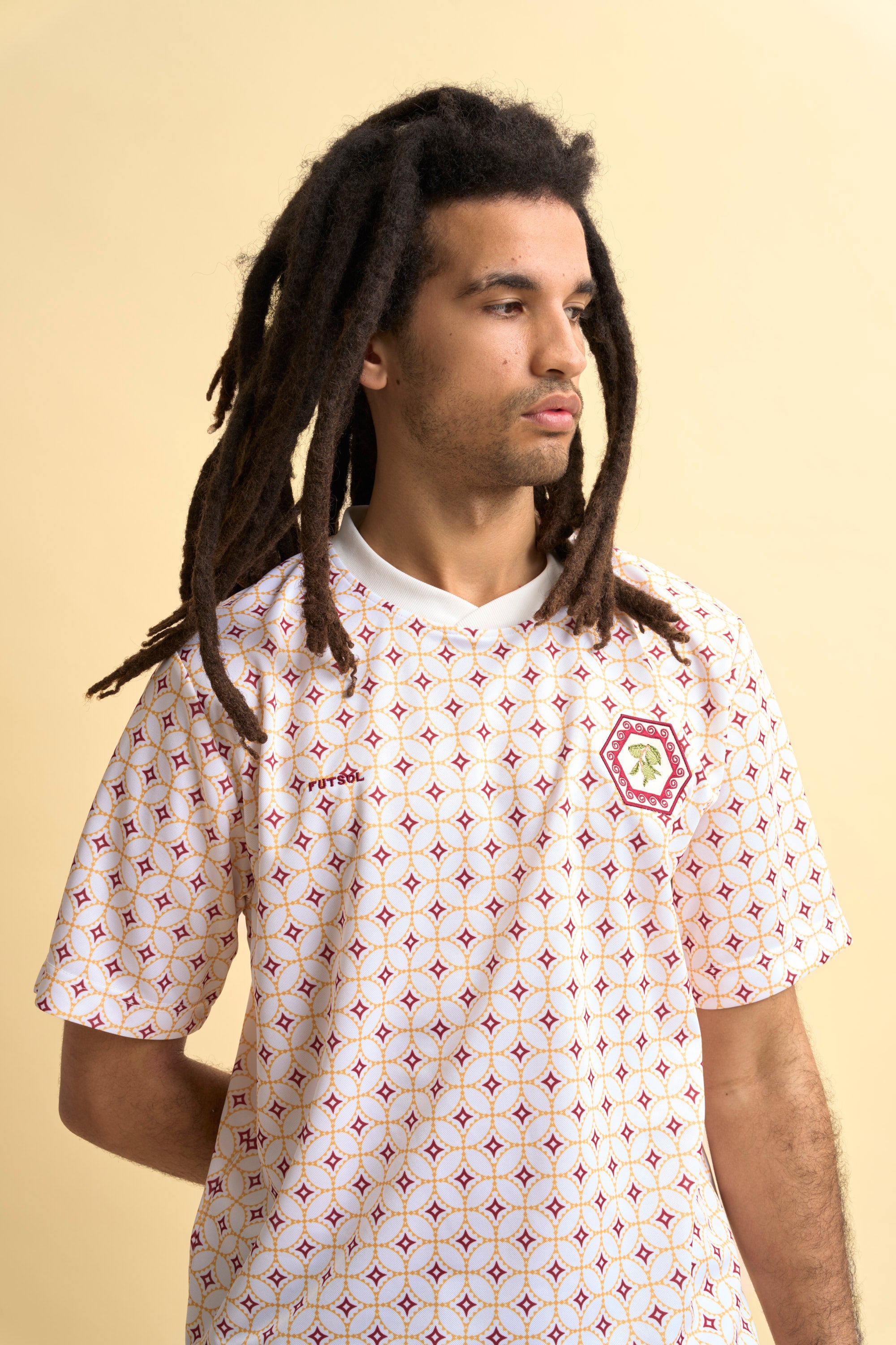 Although this could be a piece of your Nonna’s favourite lino or tablecloth, it’s actually a painstakingly drawn design inspired by the mosaics from the Villa Romana del Casale in Piazza Armerina, a small Sicilian town that inspired our this collection. The olive branch: a symbol of connection and communion. Just like your favourite five a side game.