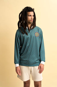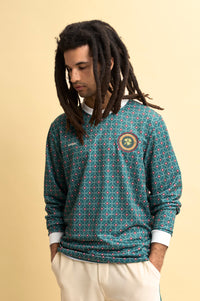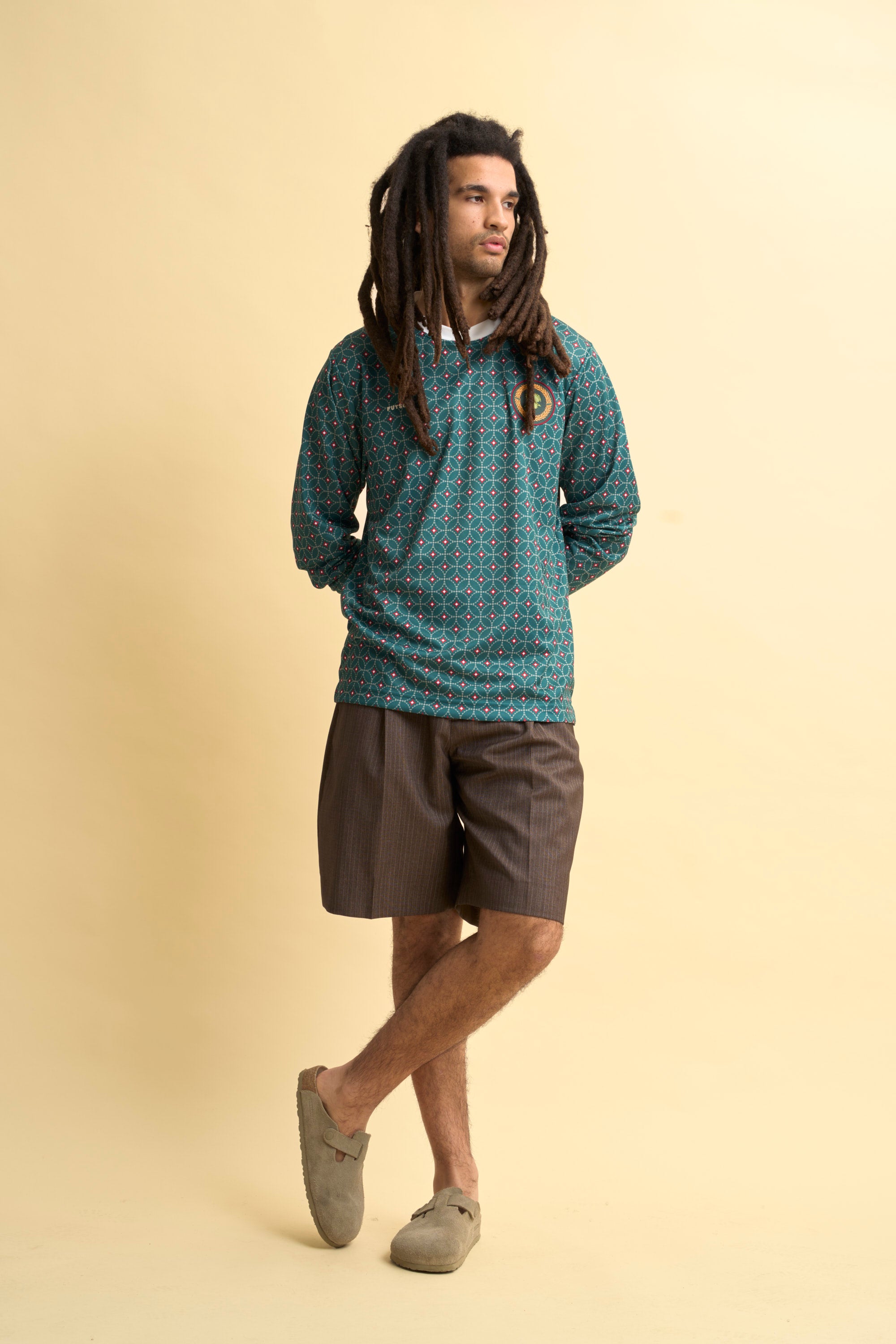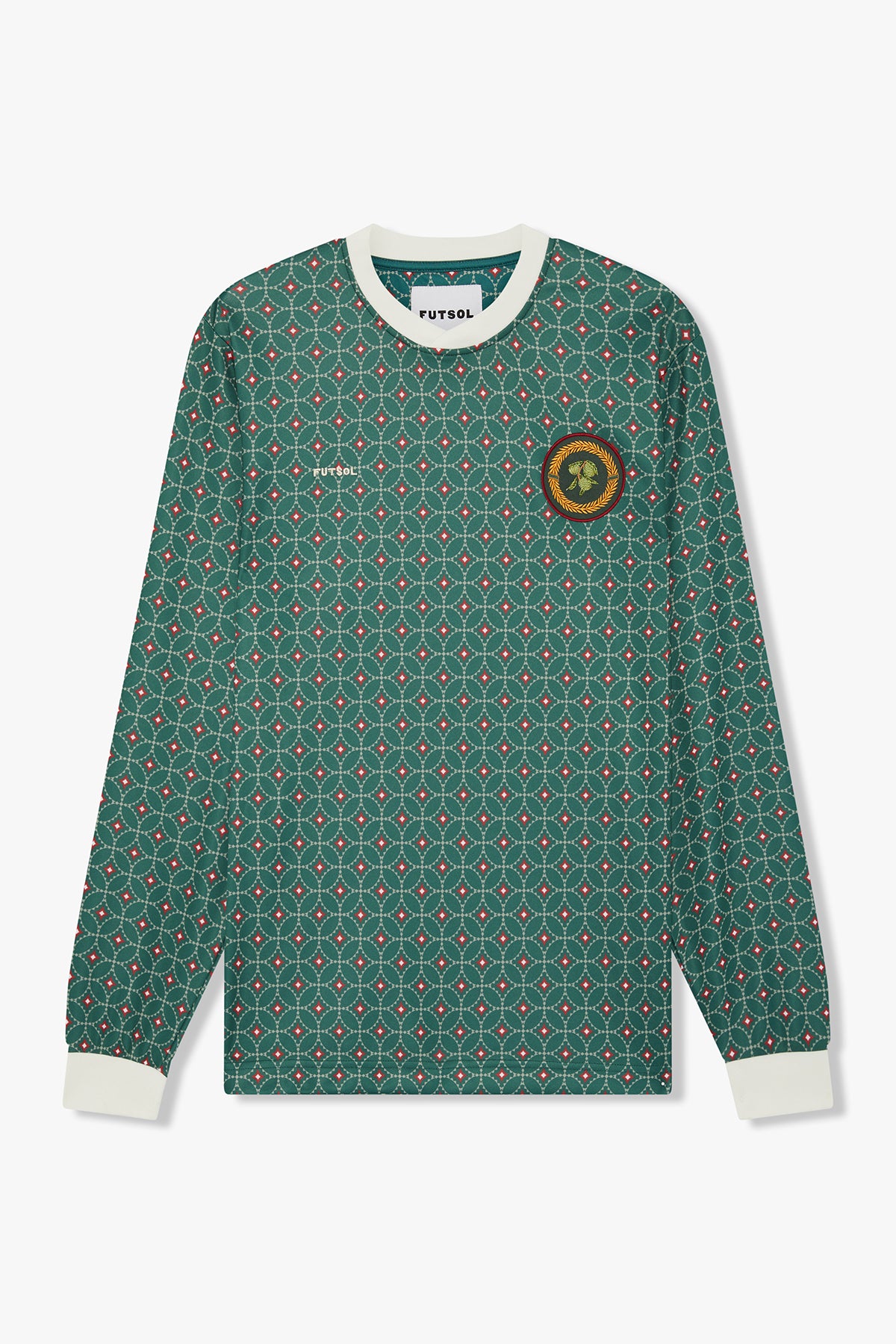 Although this could be a piece of your Nonna’s favourite lino or tablecloth, it’s actually a painstakingly drawn design inspired by the mosaics from the Villa Romana del Casale in Piazza Armerina, a small Sicilian town that inspired our this collection. The rich hues of deep green and burgundy give it a distinguished feel. The olive branch: a symbol of connection and communion. Just like your favourite five a side game.