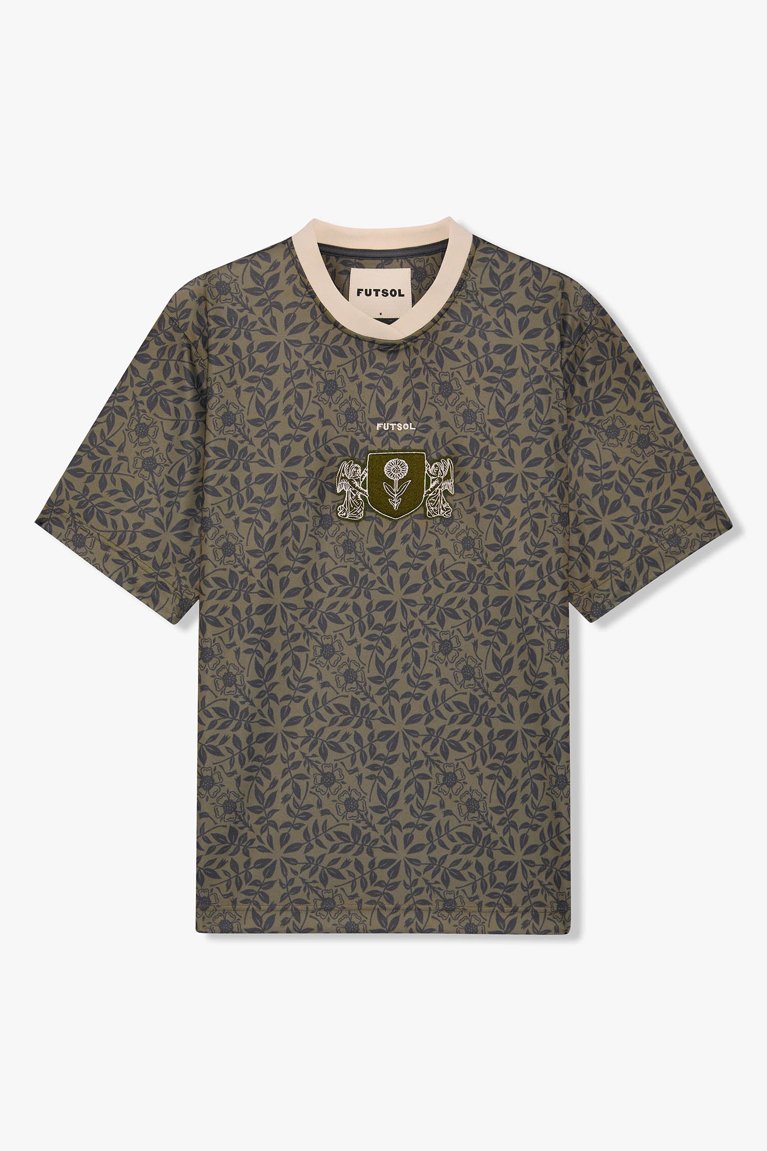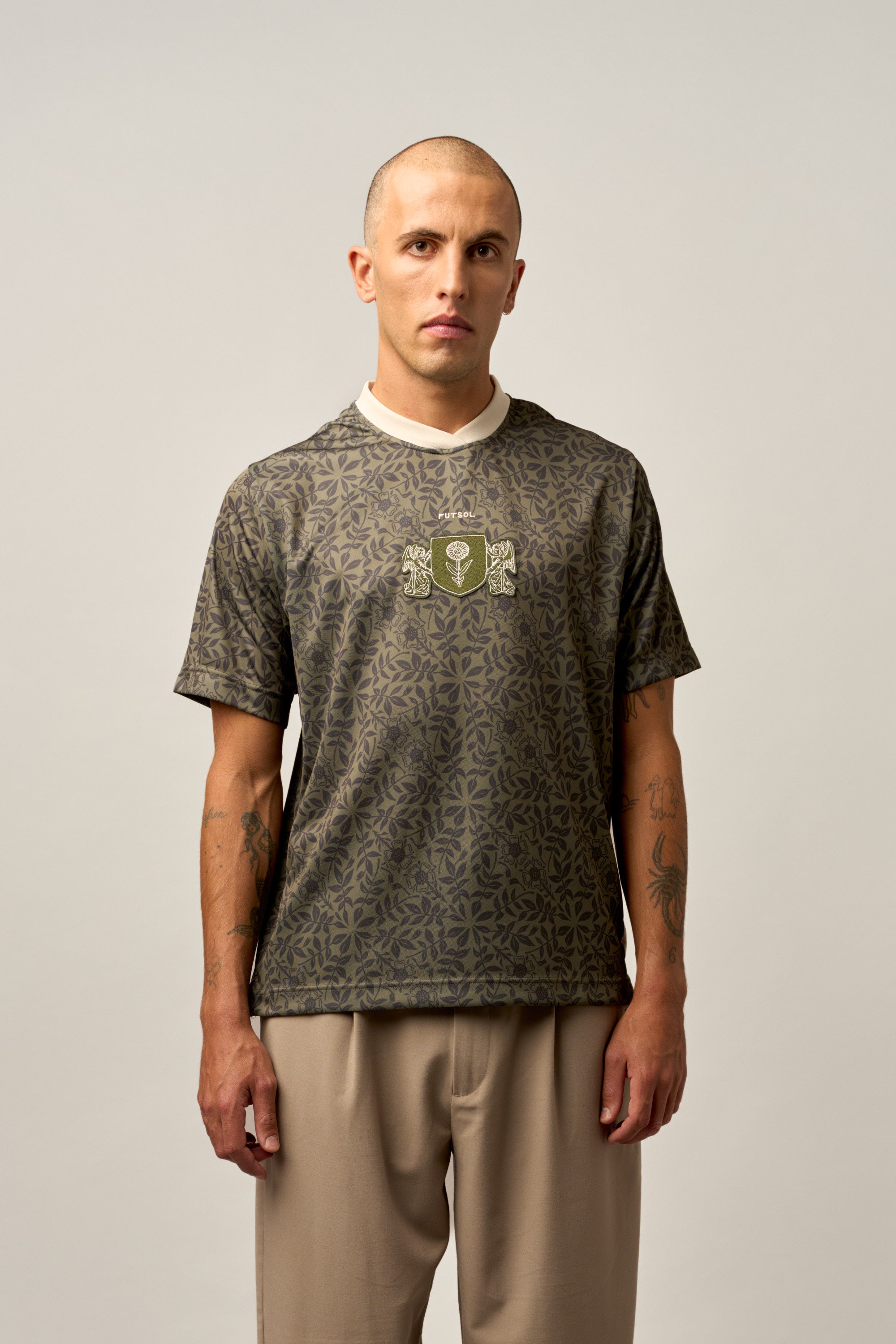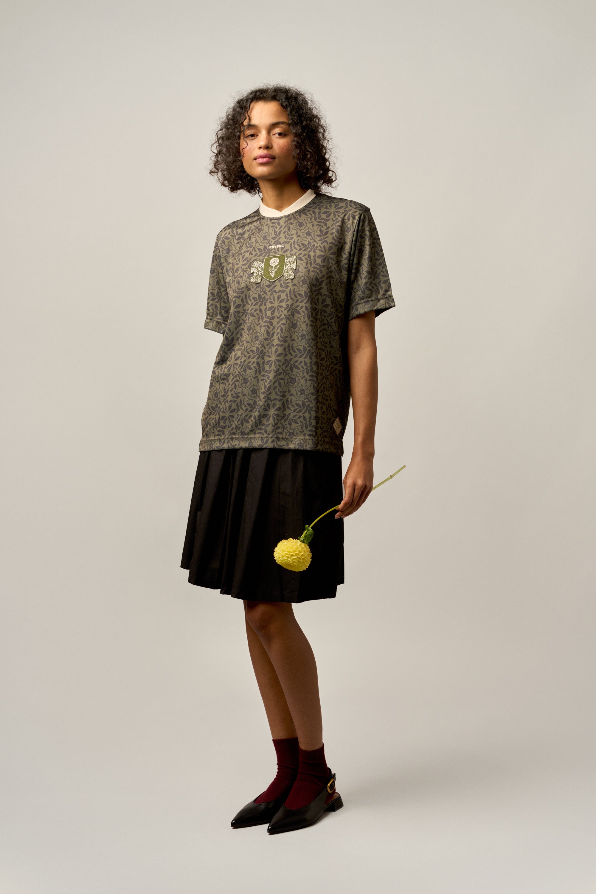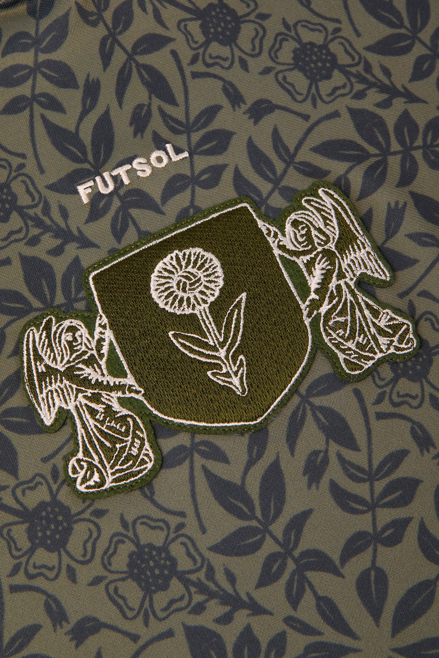 Inspired by folk football, played in village greens and on drizzly park pitches, this collection channels the essence of communion with nature – a connection to the grass, soil and elements. This winter, we seek escapism, a higher power through the game and the earth it is played on. From the embroidered crest to the wildflower print, this jersey takes us there.