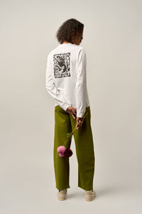 Slightly unnerving pagan artistic references - but make it fashion. The ram was a beast revered in traditional English folklore, which is why it serves as a muse for our new collection, celebrating the ancient, mythic roots of the game. Come on the pilgrimage with us in this cotton white long sleeve jersey, which we’ll be wearing at the restaurant after the game.